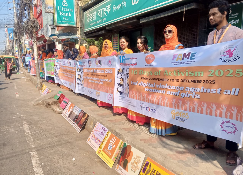 La iniciativa conjunta de PURNIMA, Sarbojanin Unnayan Sangstha y Nabodigonto Nari Unnayan Sangstha demuestra un firme compromiso con una sociedad más justa, inclusiva y libre de violencia. A medida que avanza la campaña, las tres organizaciones hacen un llamamiento a los ciudadanos, especialmente a los hombres y los niños, para que se movilicen como aliados para promover la dignidad, el respeto y la igualdad de las mujeres y las niñas en todo Bangladesh.
